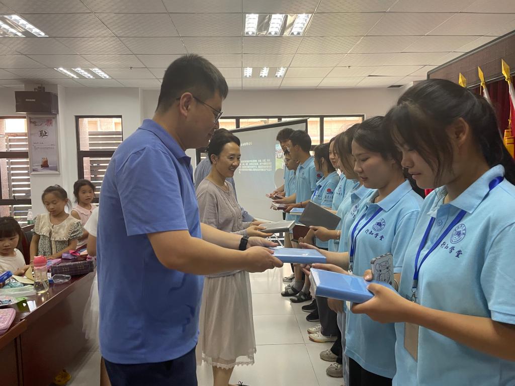 课后,大家为小学员们赠送了文具、铅笔等学习用品。勉励同学们要珍惜此次实践机会,拓展视野,运用所学知识,增强自己的能力。